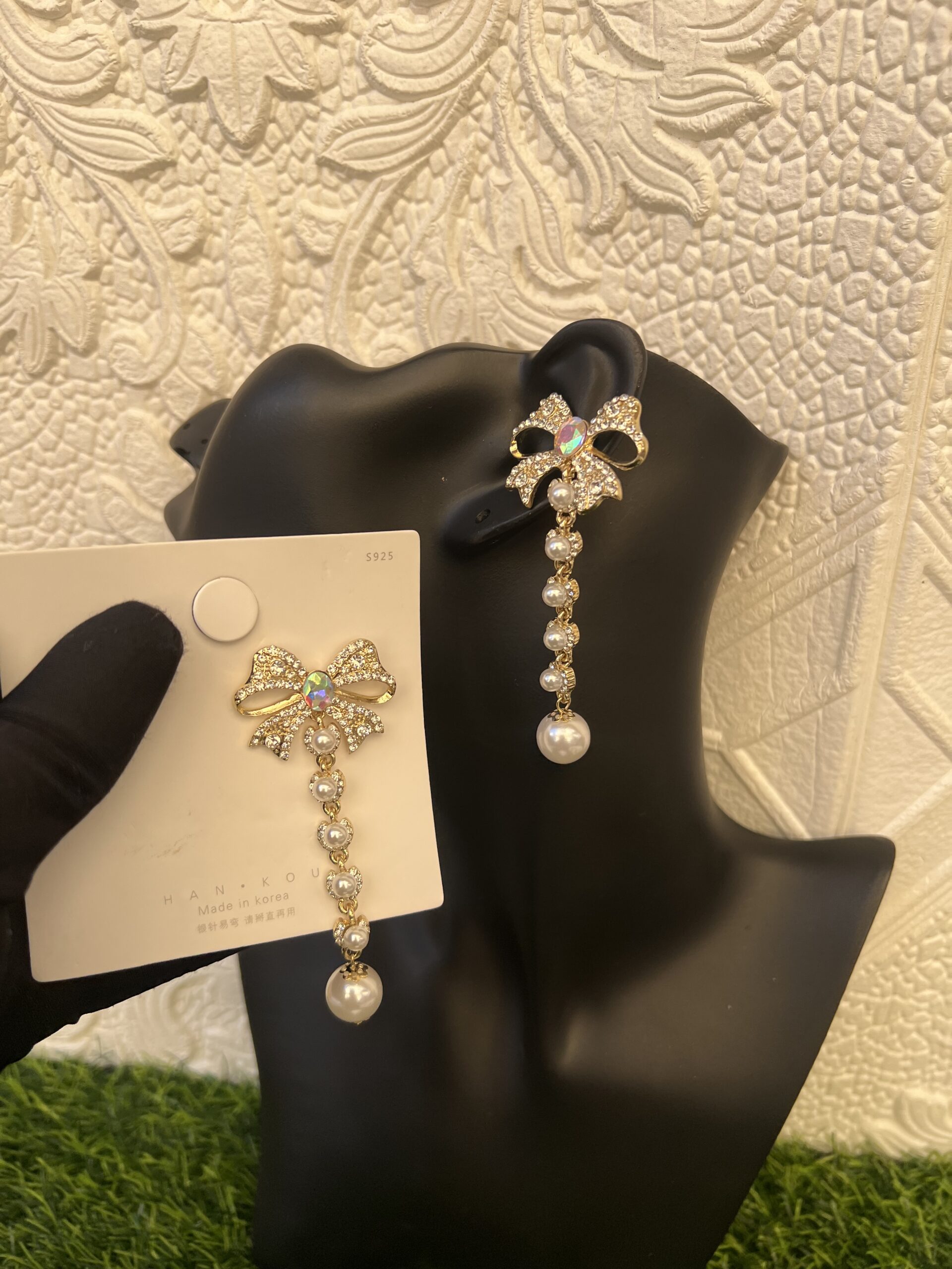 Bow tie dropping stoned earrings