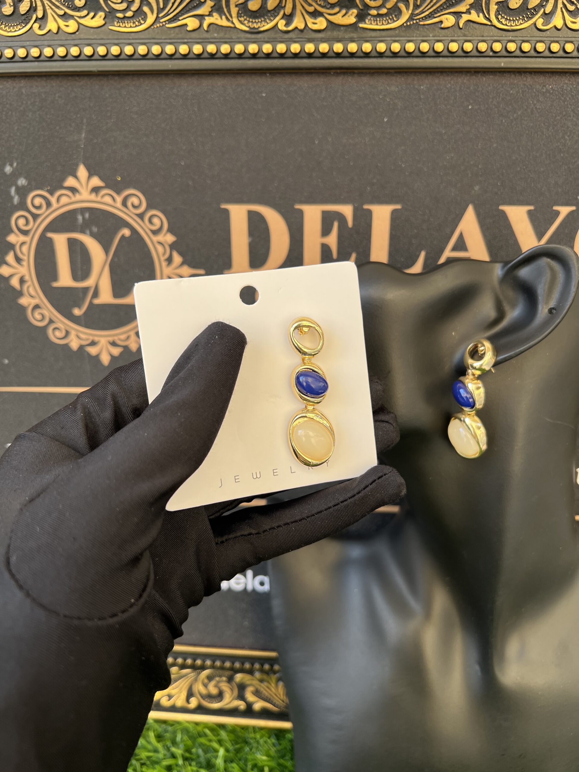 Gold/offwhite bold stud features a striking design combining radiant gold with soft offwhite accents, creating a modern and eye-catching accessory.
