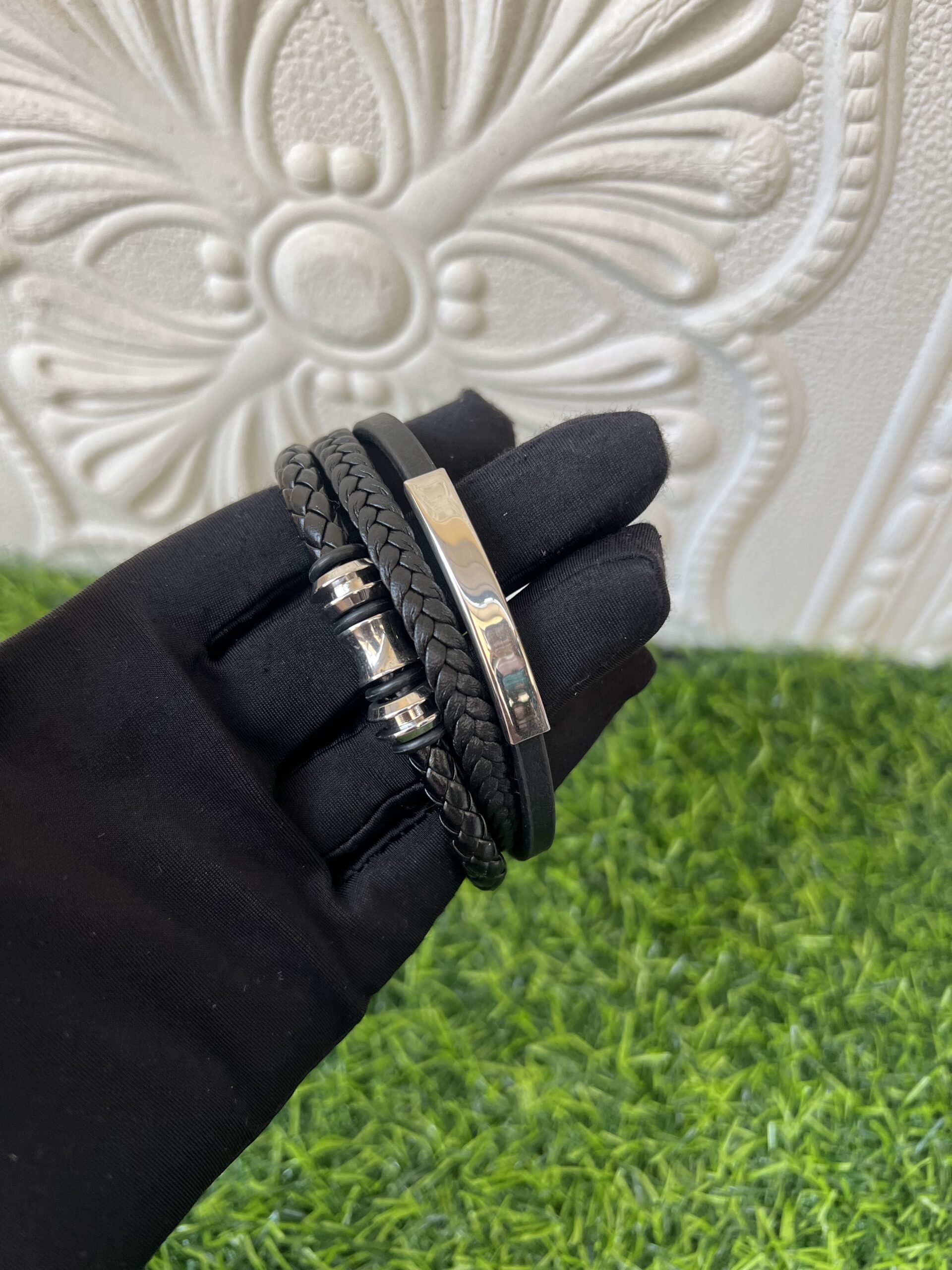 Our Black Steel Male Bracelet fuses industrial strength with radiant luxury, crafting a bold, enduring statement that gleams with modern sophistication.