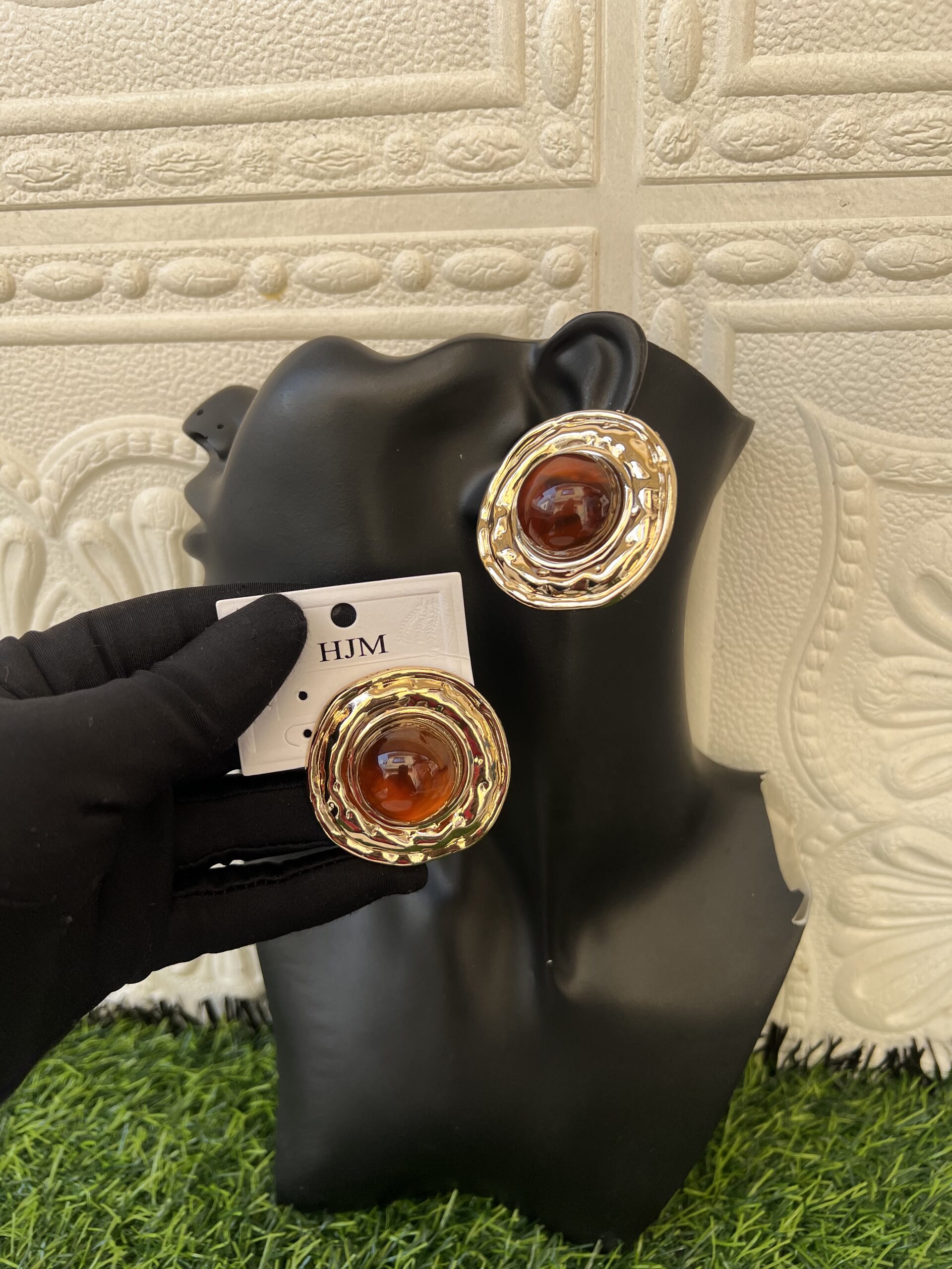 Gold/offwhite bold stud features a striking design combining radiant gold with soft offwhite accents, creating a modern and eye-catching accessory.